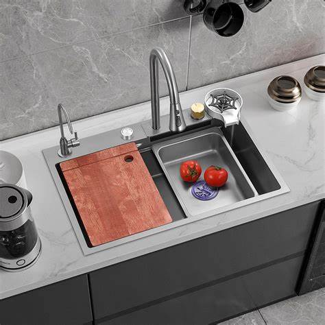 Chiuvetă de bucătărie multifuncțională otel inoxidabil LED 75x50x27
