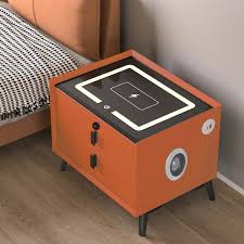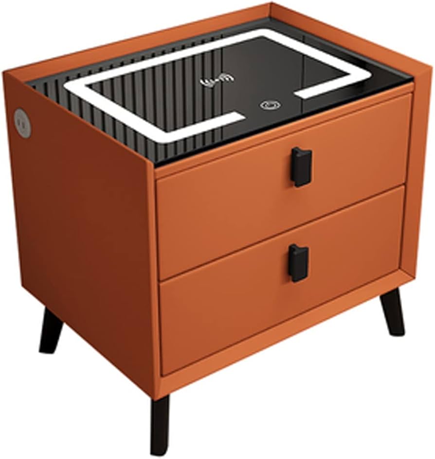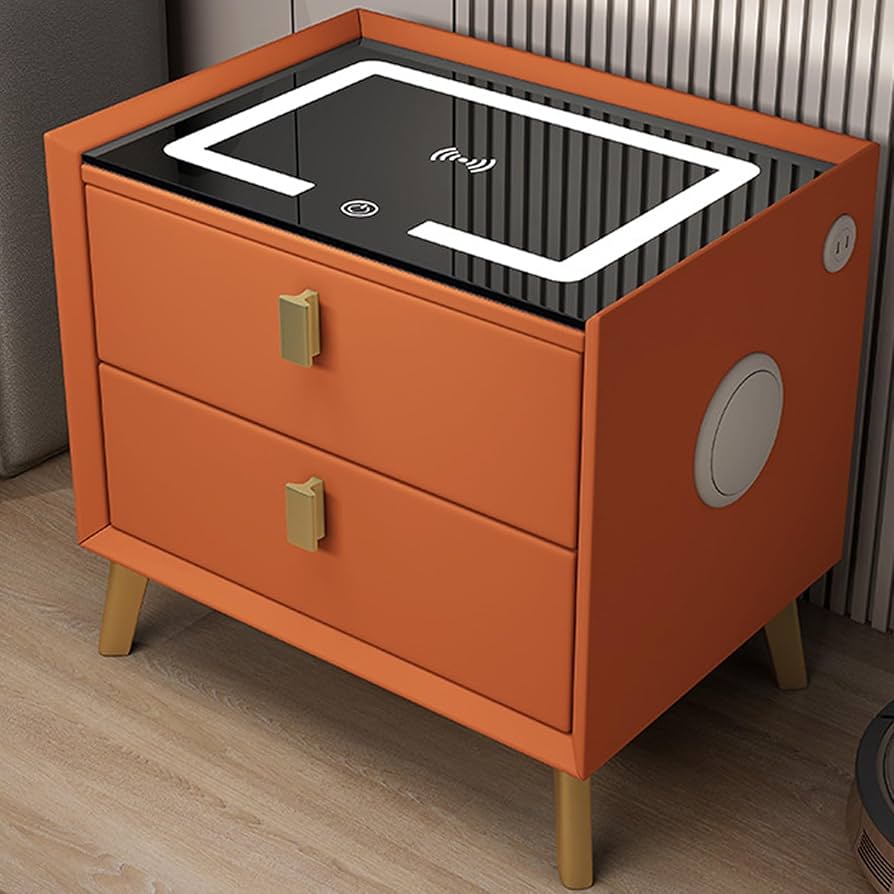 Noptiera Smart Multifunctionala, 2 Sertare, Iluminare LED Tactil, 3 Culori, Incarcare Wireless, si Usb, Difuzor Bluetooth 50x40x46