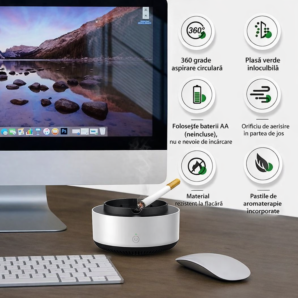 🚭 Scrumieră Electrică Inteligentă cu Aspirație – Spune ADIO fumului și mirosurilor neplăcute!