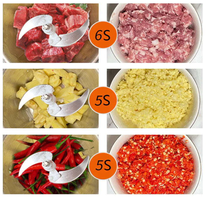 Cu o putere de 1000W, acest tocător electric face față cu brio oricărei provocări culinare.